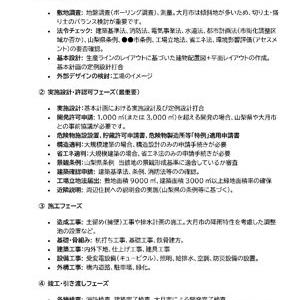 大規模工場建築の場合、大きく分けて「企画・基本設計」「実施設計・許認可」「施工」「試運転・操業準備」の4フェーズに分かれます。