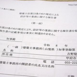「建築士法第23条の6の規定による設計等の業務に関する報告書」は、毎年山梨県知事へ報告を行う義務があります。